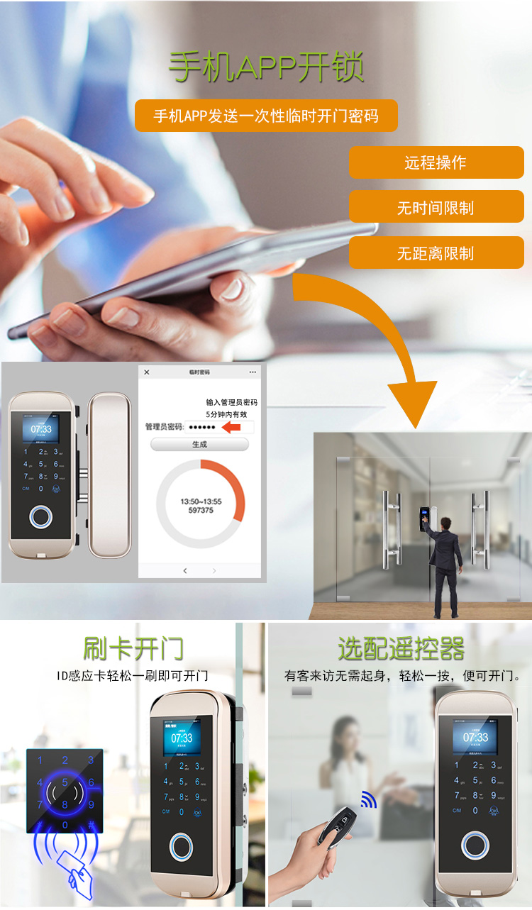 KB668-Tuya 涂鸦APP 玻璃门指纹锁