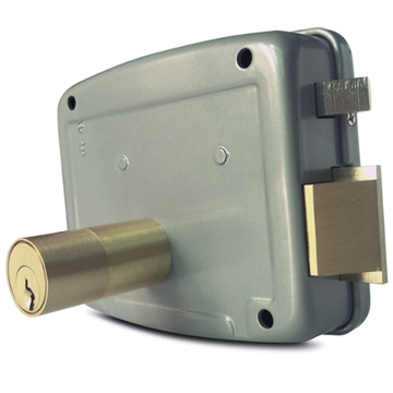 | Double connected cylinders electric rim lock Brass connected lock cylinders Lock body: steel Brass big latch; Brass small bolt With strike plate With plastics roller With press button With NC/NO function | |