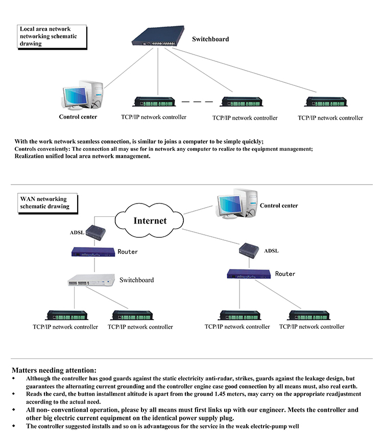 Function DescriptionControl 1 Door and 2 card readers:One reader for enter , the other for exit,One button for exitControl 2 doors and four card readers :Two readers for enter ,the other two for exit;Two Exit buttonControl 4 doors and 4 card readers ,four readers for enter ,four exit button
