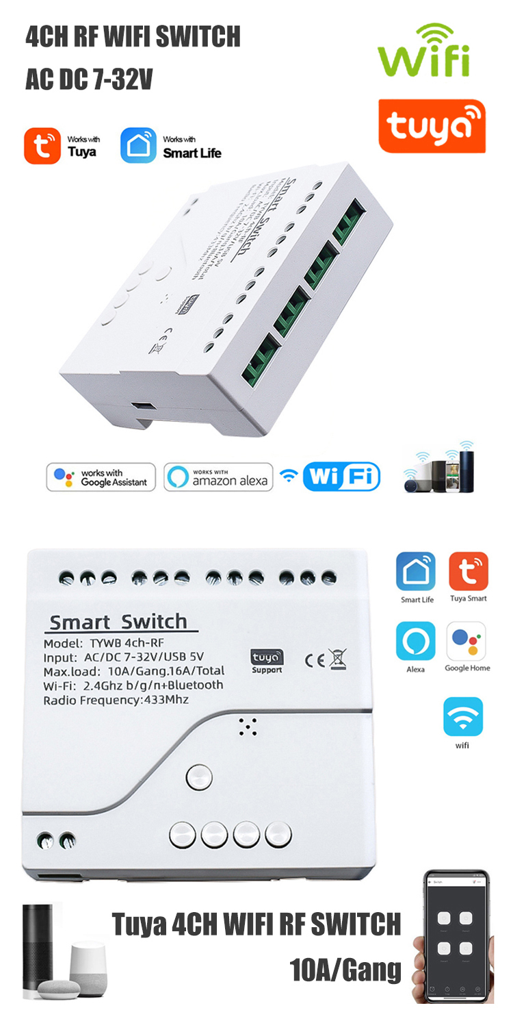 4CH RF WiFi Smart Switch AC DC 7-32V